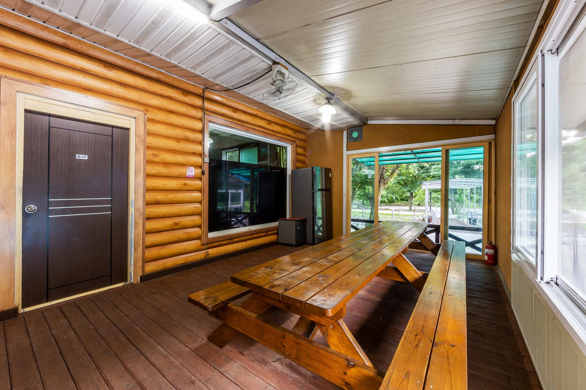 하얀집 펜션의 가장 큰방 입니다. 12인이 함께 식사 가능한, 대형 테라스를 즐겨보세요. 대가족 모인, 직장 워크샵에 적합합니다.